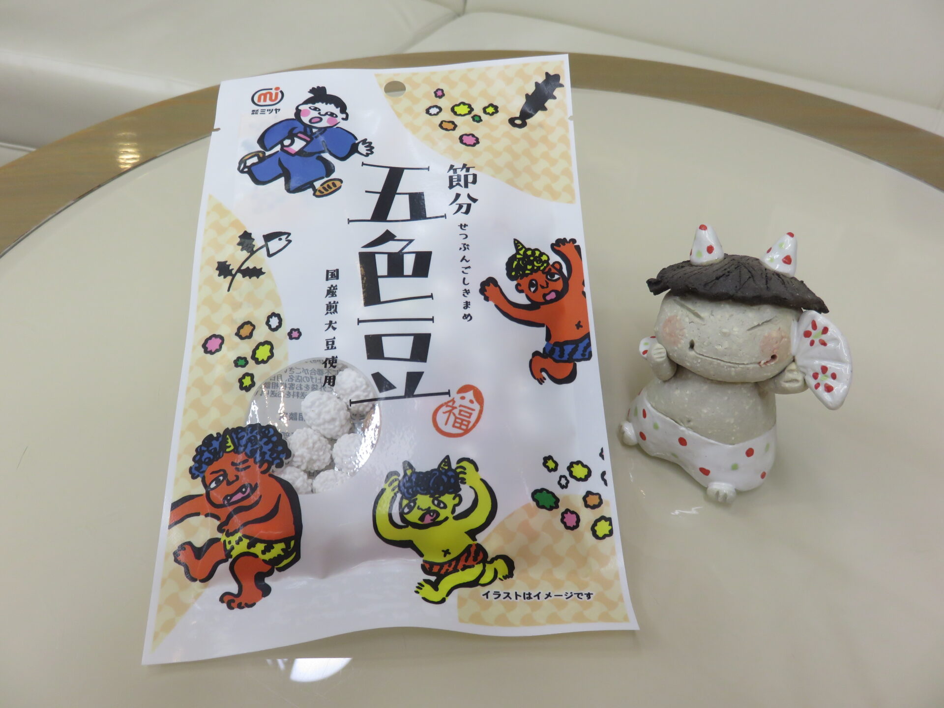 節分豆というと、邪気を払い福を招くよう「鬼は外、福は内」の掛け声と共にまくイメージがありますが、節分豆を食べるのは「一年を元気に過ごせるように」という願いを込めた行為だそう。今年ご用意した節分豆は、味わいも楽しい五色豆。願いを込めながらカリポリと美味しくお召し上がりください。